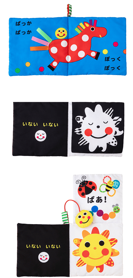 めくったりつかんだりひっぱったり、指先を動かしながら、目と脳の発達をうながします。