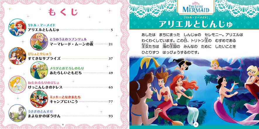 子どもが読みやすい小さめサイズの絵本。本編は「アリエル」「ベル」たちプリンセスや、ディズニーの仲間のお話が充実の100ページ越え!『ディズニーおでかけえほん ディズニープリンセス ミッキーマウス』絶賛発売中! バッグにポンのお手軽サイズ! プリンセスやミッキーのお話がいっぱい! 持ち運びやすく、お出かけのちょっとした時間にも楽しめる大満足の一冊です♪