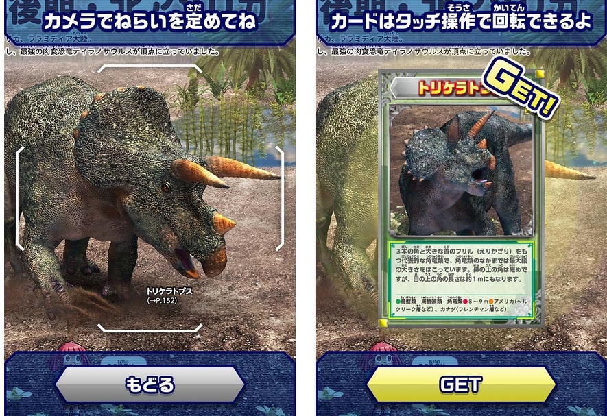 これだけでも十分にオンライン図鑑として楽しむことができますが、動画でも紹介されていたとおり、ここからが「GET+」の真骨頂。図鑑の紙面に組み込まれたARマーカーを読み込むことで、オンライン図鑑をさらに豪華に、自分だけのものにバージョンアップしていくことができるんです。