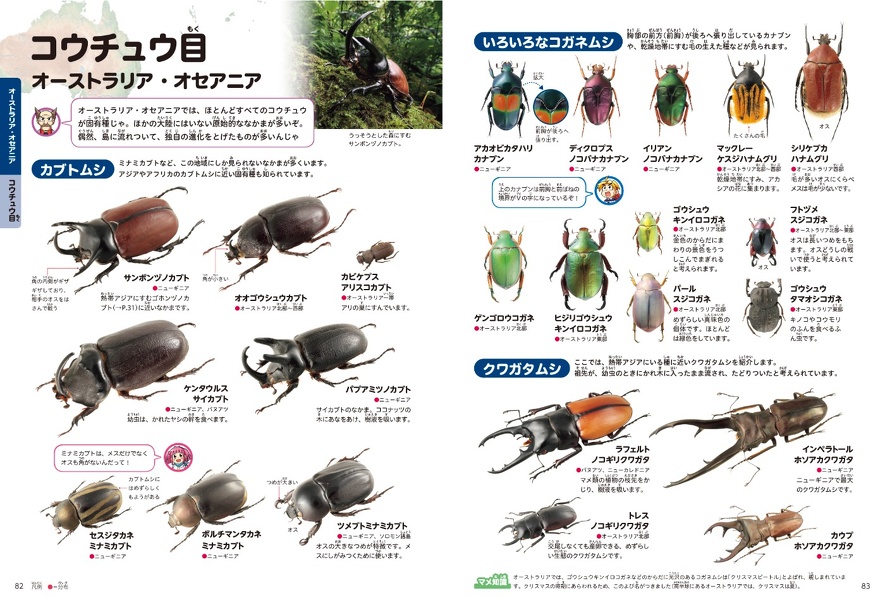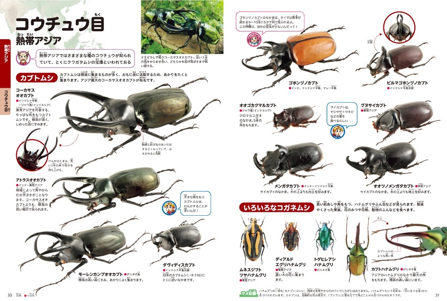 東南アジアのカブトムシとオセアニアのカブトムシなど、図鑑の中から集めてきて自分なりに組み替える。他社の学習図鑑と違って、あちこちに散らばっているおかげで、自分で探し出す楽しみみたいなものが生じますね。自分で発見して探して編集し直すみたいな作業が成立しますよね。