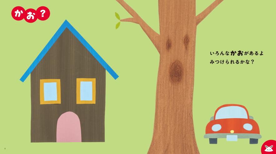 絵本を読んだあと、身の回りのものにも目を向けて「これも顔みたいかも」と気づいたり、ごはんをこぼした跡が顔に見えたり、といったことが日常に広がっていったらいいな、とイメージしながら作りました。