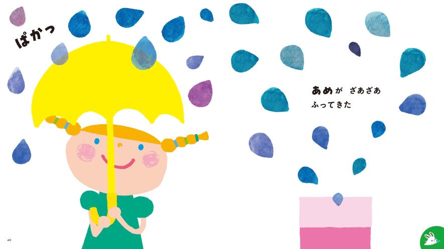 本項目に登場する「あめ」も、アクセントの違いを楽しめる言葉です。同じ言葉なのにアクセントによって“飴”と“雨”というまったく違う意味になることを、親子でおもしろがっていただけたらなと思います。