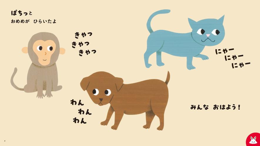 「どこが そっくり?」では、動物の親子がはぐれてしまったという場面を通して、「ママパパに会えてうれしい」という再会の安心感とともに、「似ているところ・違うところ」を発見する楽しさを感じられるようにしています。