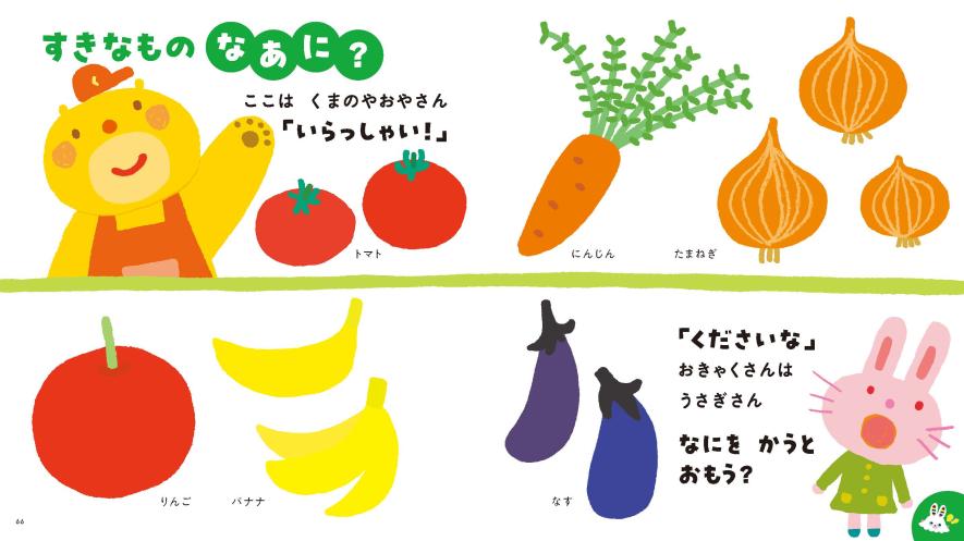 「のりものかくれんぼ」や「たべもの きったら」は、予測することの面白さを楽しむことを中心にした内容です。子どもは予測と結果を繰り返し経験することで世界への理解を広げていきます。この絵本を通して、新しいこと・ものを発見する楽しさを感じてもらえたらと思います。