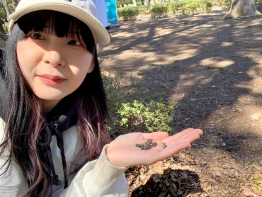 小さい頃から虫が大好きでしたが、だんごむしの魅力に気づいたのは3年くらい前なんです。ある日、ゲームセンターのUFOキャッチャーの景品に、デフォルメされただんごむしのぬいぐるみストラップがあるのを見つけたんですが、それに胸を打たれまして…。丸くて大きな目と、まるっとしたフォルムで、「だんごむしってデフォルメしてこんなに可愛いんだ!」と衝撃を受けたんです。その日から、だんごむしのことで頭がいっぱいになって、家に帰ってインターネットで調べて、知れば知るほどすごい魅力の詰まったいきものだなって思ったのがきっかけです。庭や公園の石の裏にいる黒っぽいオカダンゴムシだけでなく、水玉模様のクラウンダンゴムシだったりと、いろんな種類がいて、奥深くって。だんごむしのことを考えるだけでテンションが本当に上がるんです。