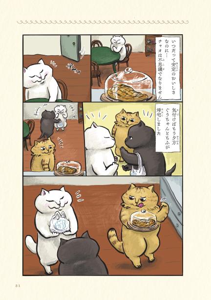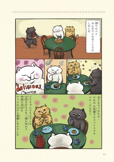 初のフルカラーコミック『ひなた村の3匹』は、今までは一枚絵で描いていた動物たちが、どんな日常を過ごしているのかな、と思いながら描きました。短いながらもお話になることで、チャオ・ぐうちゃん・ちふの3匹を頭の中で動かす作業がプラスされたことで、すごく個性が出てきて、今後、描く絵にも広がりが生まれたと感じています。書籍も装丁事務所のアルビレオさんが、とてもほのぼのしたデザインに仕上げてくださり、すごくうれしかったです。