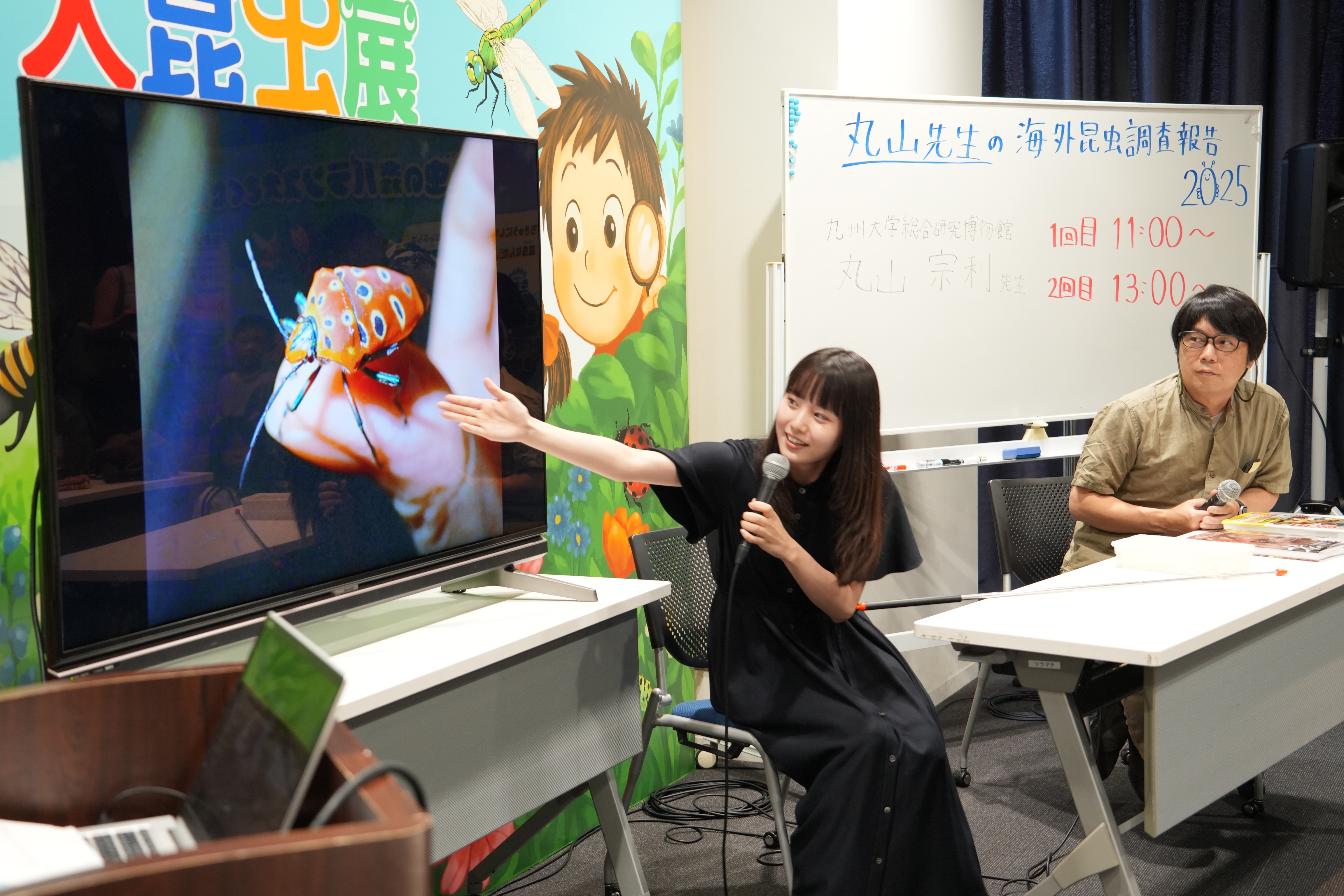 夏休み期間に東京スカイツリータウン・ソラマチにて開催されていた「大昆虫展 in 東京スカイツリータウン」で行われた、 丸山宗利先生の「海外昆虫調査報告2025」にゲストとして参加させていただきました。 お会いした際に丸山先生から、「片田さんの活動で新しい虫好きになる方々が増えるかもしれないから、 すごく応援してます」といったエールをいただきました。 自分が一番尊敬している昆虫学者さんから、 そんなお言葉をいただいたことが本当にうれしくて、 頑張るしかないな、 と強く思いました。 若いうちは、 できるだけ表に立って虫の良さを広めていく活動をしていきたいですが、 将来的には大学で虫の研究がしたいなとも思っています。