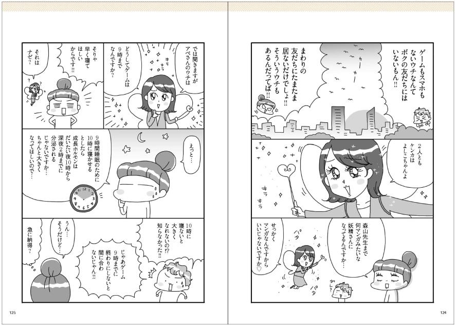 なぜ「夜9時まで」なのかを子どもに問われたアベさん。森山先生は、子どもの「大きくなりたい」という欲求と、「9時間睡眠のためには10時に寝る必要がある」という科学的根拠(成長ホルモン)を結びつけて説明。納得した子どもは「じゃあゲーム9時までに終わりにしないと間に合わないじゃん!!」と自ら気づきます。