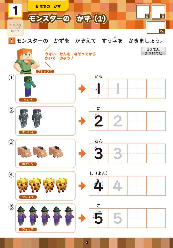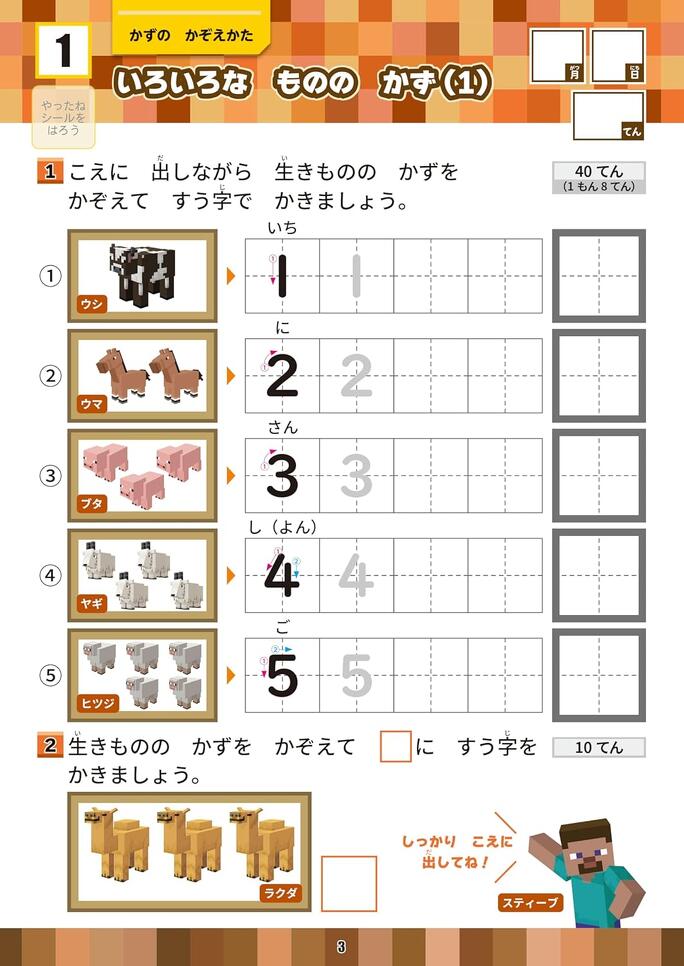 学習ドリル マインクラフトで学ぶすう・ずけい・たんい 小学1年