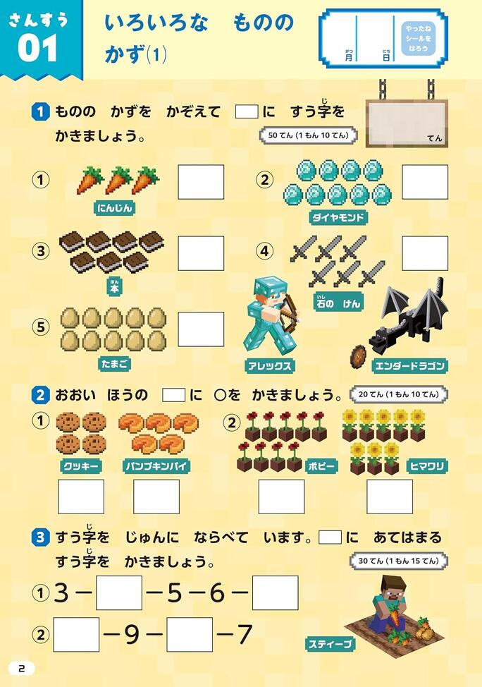 - 『おけいこドリル マインクラフト かず・とけい』