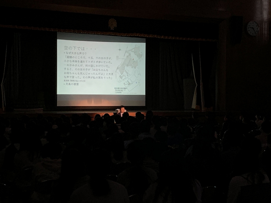 今回の授業のテーマは、「東京大空襲はなぜ起きたのか?」。昨日3月10日は、79年前に東京大空襲があった日で、たった一晩の空襲で約10万人以上もの人が亡くなりました。しかし、子どもたちにとってそうした空襲や戦争の経験は、もはや過去のものとなっています。そんな現代の子どもたちが戦争や平和について考えるきっかけをつくれないか、という思いから、今回の出張授業が開催されました。