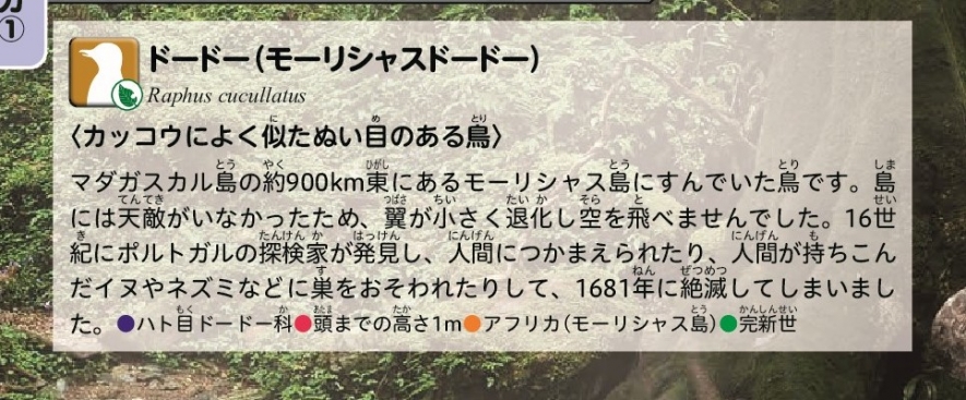 ドードーを例に作ってみたいと思います。ドードーについては、『図鑑GET!絶滅動物図鑑』のP.150に掲載されています。