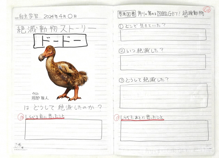 こんな感じ! 個人的に大切だと思うのは、「しらべる前に思ったこと」と「しらべたあとに思ったこと」。この2つを書くことで、新たな発見があると思います。参考図書も忘れずに書いてくださいね! 参考図書として書いておいていただければ、図鑑のページをコピーしてもOKです!
