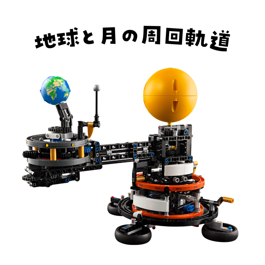レゴ®ブロックの「レゴ®テクニック 地球と月の周回軌道」を組み立てて、ハンドルをまわすと、地球と月が動きはじめます!