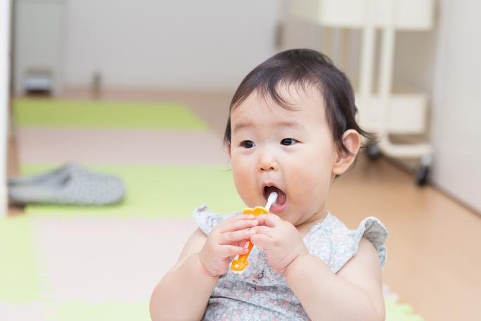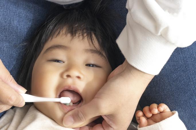 答えは「歯が生えたらすぐに」です。歯が生えてくれば、ミルクや母乳しか飲んでいなくても虫歯のリスクにさらされていることになります。