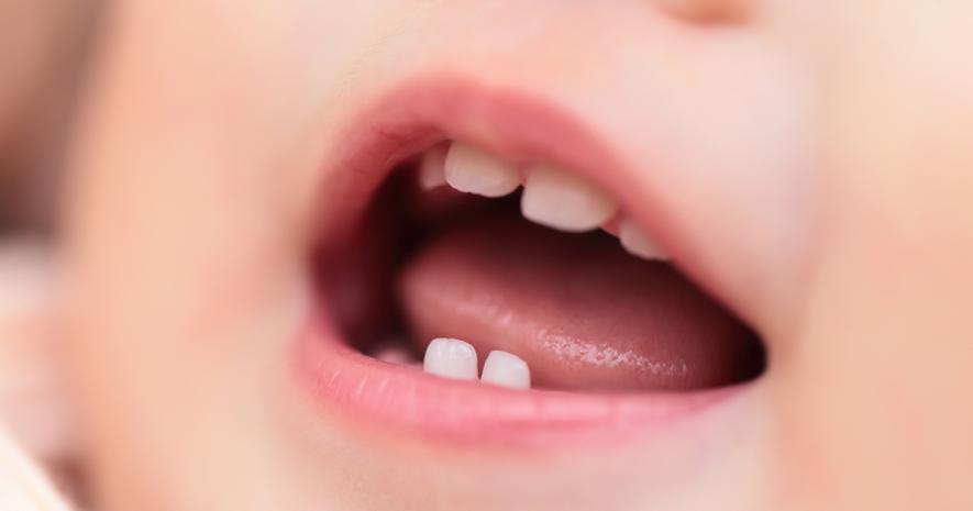 生まれて半年を過ぎるあたりには、初めての歯が、まず下の2本の前歯から生えていきます。次に上の前歯2本が生えてきます。この前歯は、いってみれば板のような状態の歯です。そのため、まだ離乳食の始まっていないこの時期の前歯に対して、きちんと歯ブラシでみがく意味というのはそんなにないといえます。