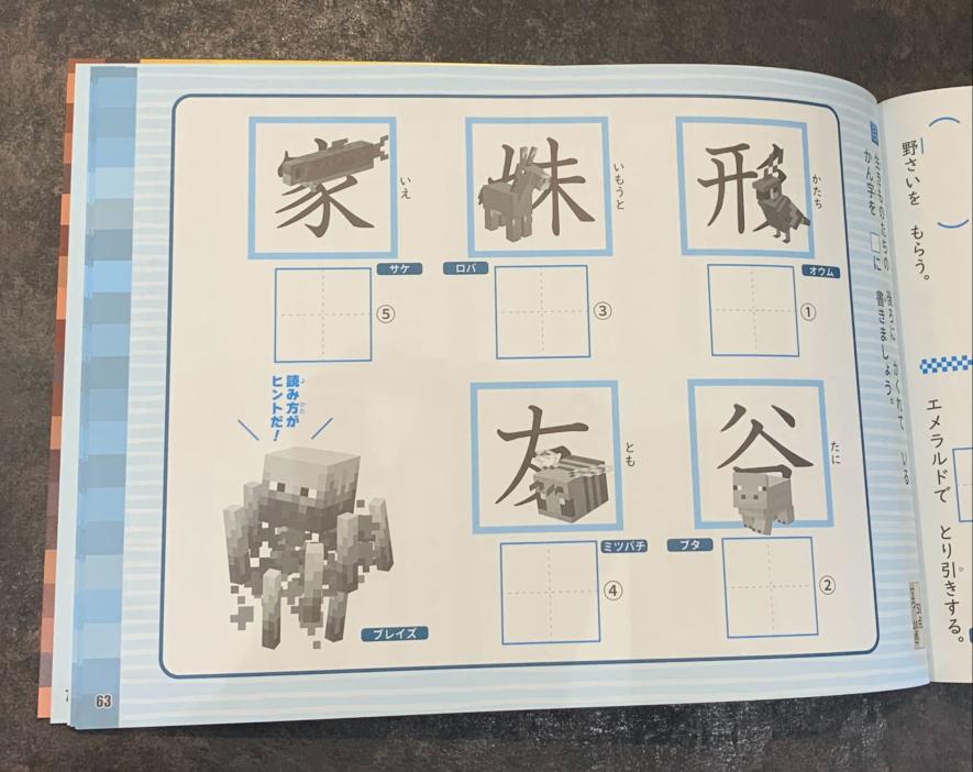 小学2年生で習う160の漢字をマイクラのMOBたちといっしょに学びます。終わったらオリジナルの「やったねシール」をペタリ。いつの間にか“漢字名人”になっているかも!?