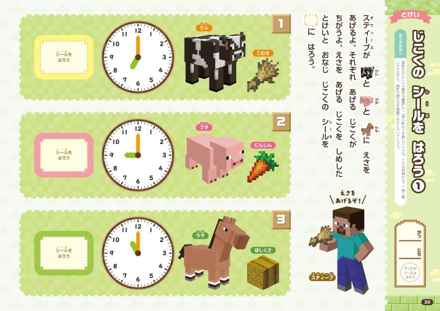 『おけいこドリル マインクラフト かず・とけい』は、入学準備として身につけておきたい数の数え方・時計の読み方を楽しく身につける一冊。