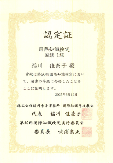 国旗検定を取得することで、国旗の知識の理解度を外部に発信できると思います。また、日頃から国旗に興味があり、国旗が好きな方、そして多くの方に国旗検定を知ってもらえる発信力のある方には、「国旗アンバサダー」に任命したいとも考えています。