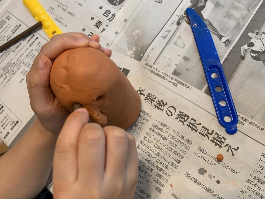 頭の部分を閉じる。あまったねんどは、とっておく。