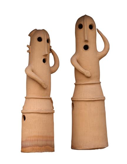 埴輪……古墳時代に作られた。素焼きの土器で、大きな壺のような形をしていたり、人や動物、家などさまざまな形をしている。古墳の上や周りに置かれ、葬られた人が死後の世界で不自由をしないようにや、古墳の主の栄光を見せるために置かれたといわれている。