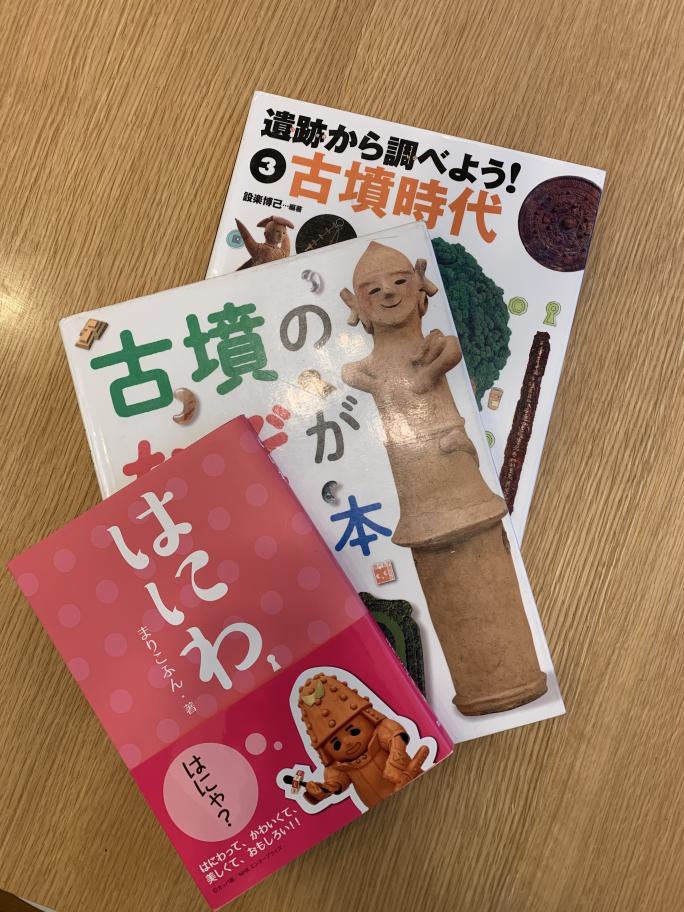 手元にあったものは、埴輪の写真がとても魅力的だが、そもそも埴輪が置かれていた古墳や時代背景のようなものが見えてこない。そこで、子どもといっしょにさっそく図書館へ行って埴輪が載っていそうな本を借りてきた。これだけあれば、資料もばっちり。