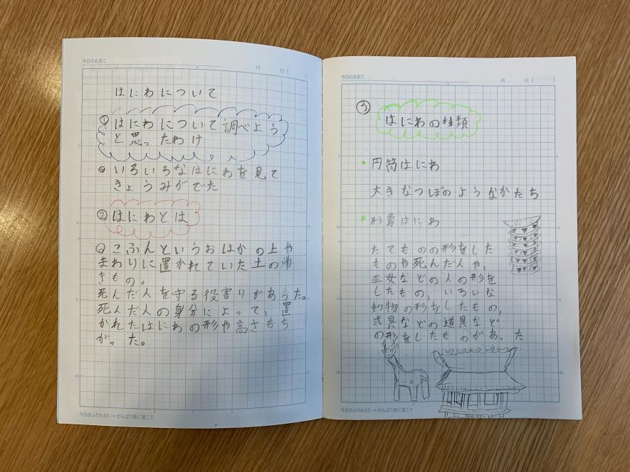 「埴輪を自主学習のテーマにしたら?」と提案すると、「やってみる!」とやる気まんまんに。