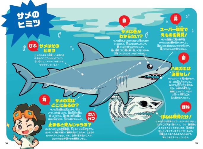 そうなんです。『ぶっ飛び☆理科でゴー!』にはサメの読み物もありますが、サメって普通に調べようとすると、ちょっと不気味といいますか。小さい子だと怖がって、なかなか手を出そうとしないんですけど、この本のようにかわいいイラストで紹介されていると親近感が湧いて。自分からどんどん読み進めて、積極的に知ろうという姿勢になるので、そこがいいなと思いました。
