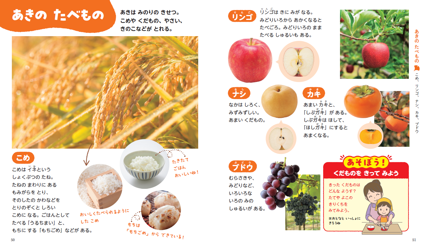 麻生先生:この図鑑を拝見して、私も「写真が本当に素敵だな」と思いました。たとえば、果物が果実だけではなくて、実際に木に生っているところまで見せてくれる図鑑って、あまりなかった気がします。子どもたちはスーパーで売っている状態しか知らないことが多いので、とてもありがたいです。