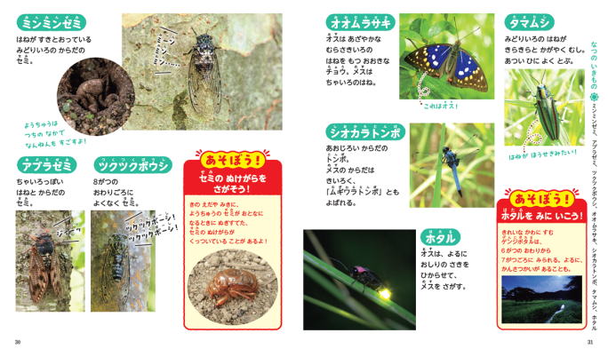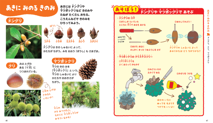 麻生先生:それは素敵ですね。季節って「今日から夏、秋」と変わるのではなくて、順々に移り変わっていくものですが、それを幼児が体感するのって難しいんです。特に幼児は、直前の季節の出来事を忘れやすいので、図鑑を使って戻ったり進めたりできるのはいいですよね。秋が近づいてきたら秋のページを見て、秋を見つけに散歩したり、夏のページに戻ったりして、季節の移り変わりを感じてもらえるといいなと思います。
