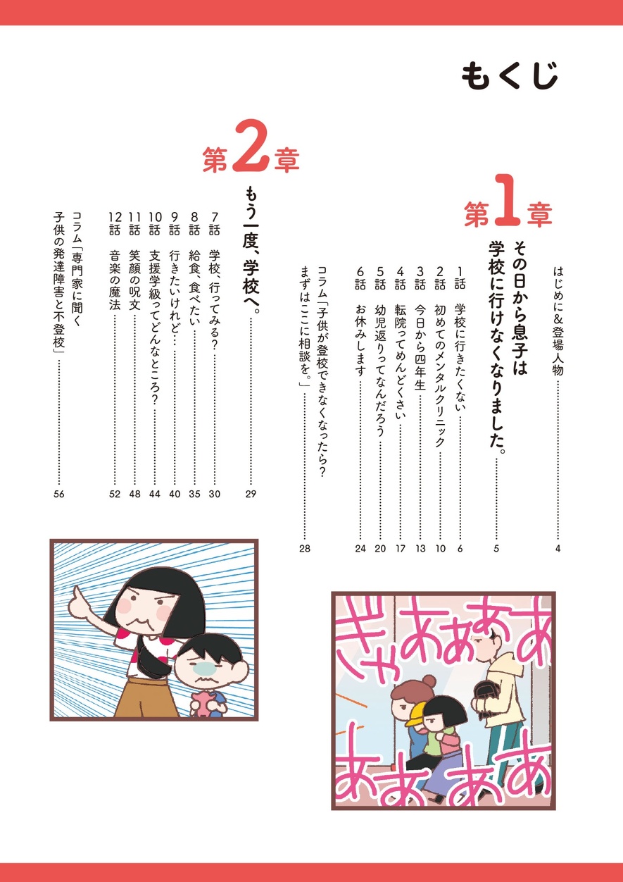 小学3年生の息子が、3学期になると突然「学校に行きたくない」と言い出した。一時的なものかと思いきや、病院へ行き投薬を始めても改善しない。普通学級から支援学級に移り、再び学校に行けるようにと母子の奮闘の日々が始まる。