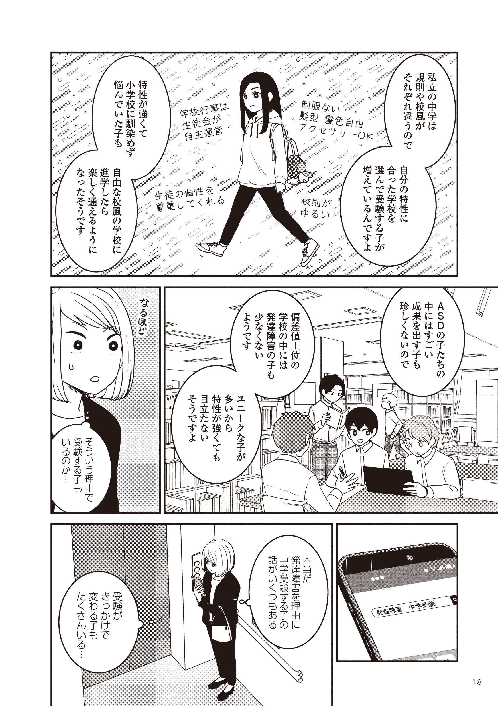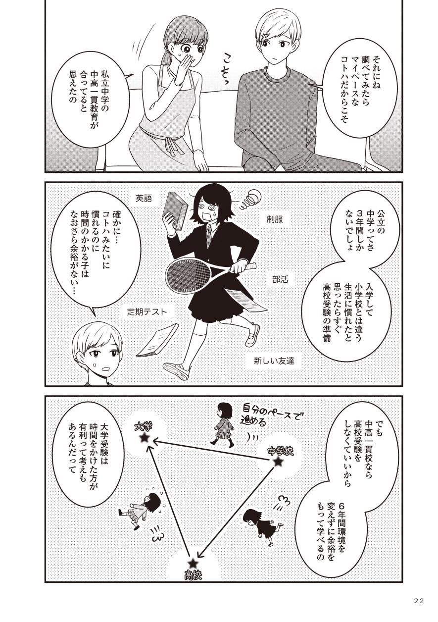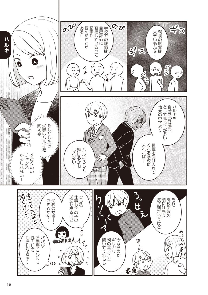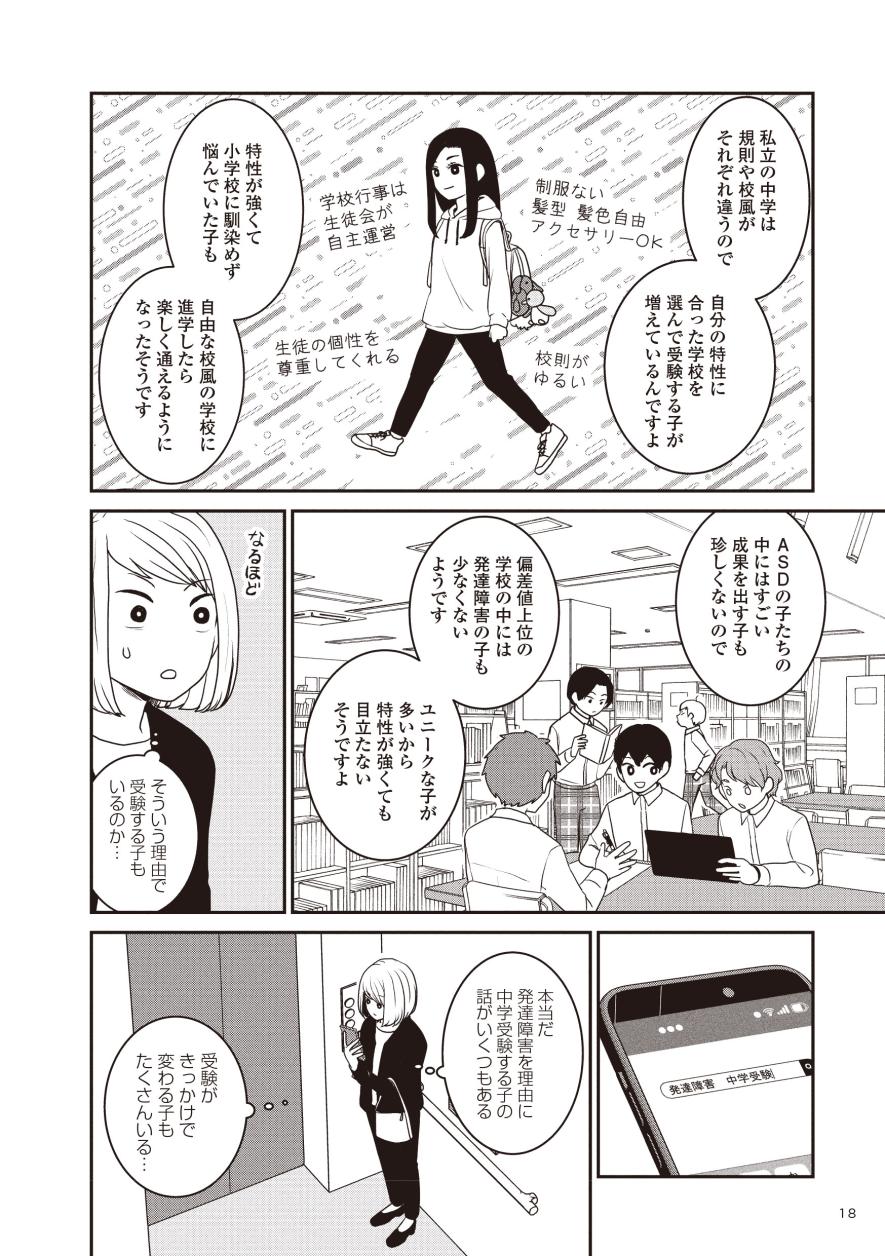「生きづらいと思ったら親子で発達障害でした」などのコミックエッセイを描いてきたモンズースー氏。子どもが過ごす居場所の選択肢は多いほど良いと考えた彼女が、発達に偏りのある子の進路に悩んでいるご家庭や情報を探している方の力になればと、選択肢の一つとして受験を経験された4つの家庭に取材し、今回実録コミックにまとめました。