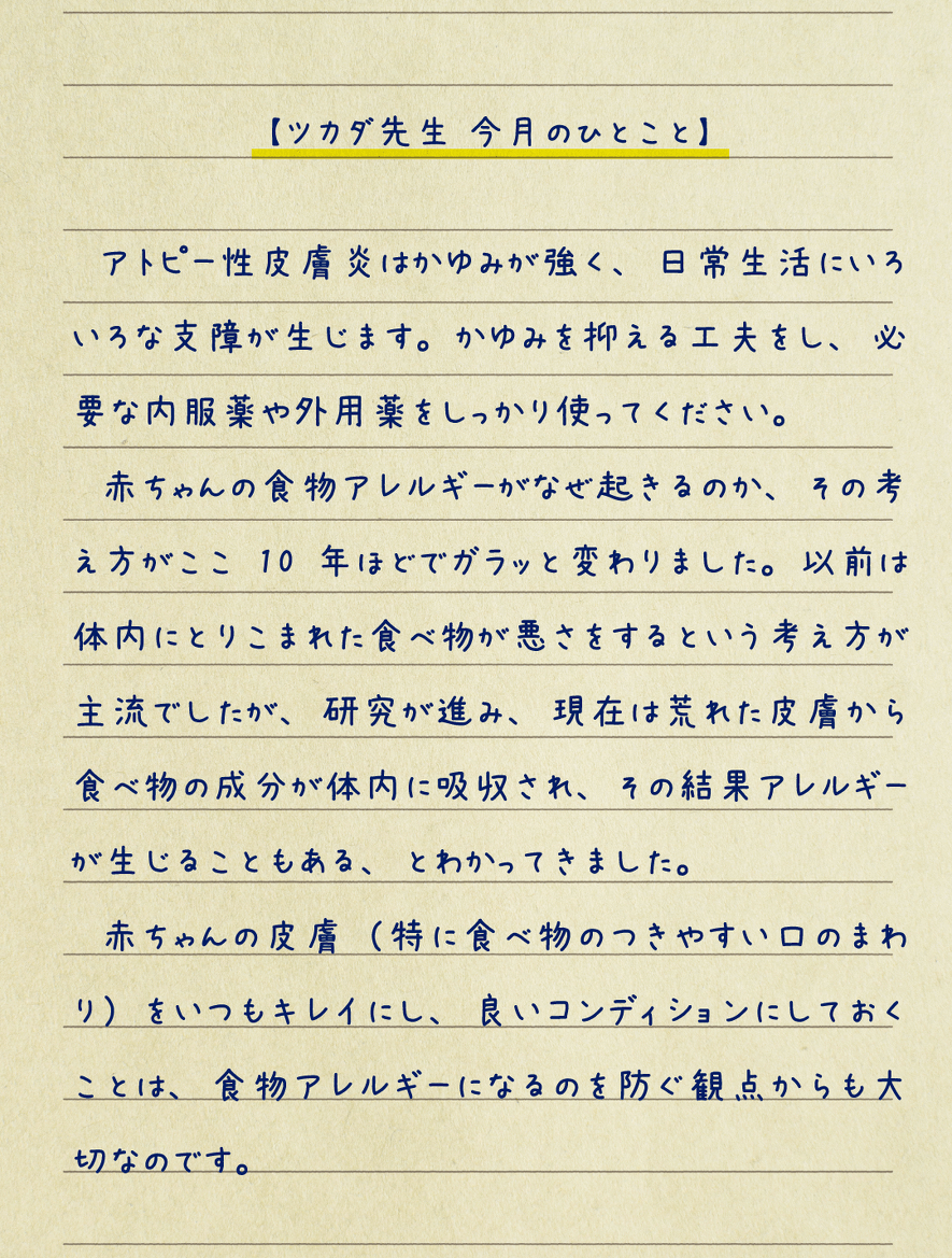 ひと昔前は、アトピー性皮膚炎は食物アレルギーを持っている子どもが発症するものと考えられていました。
