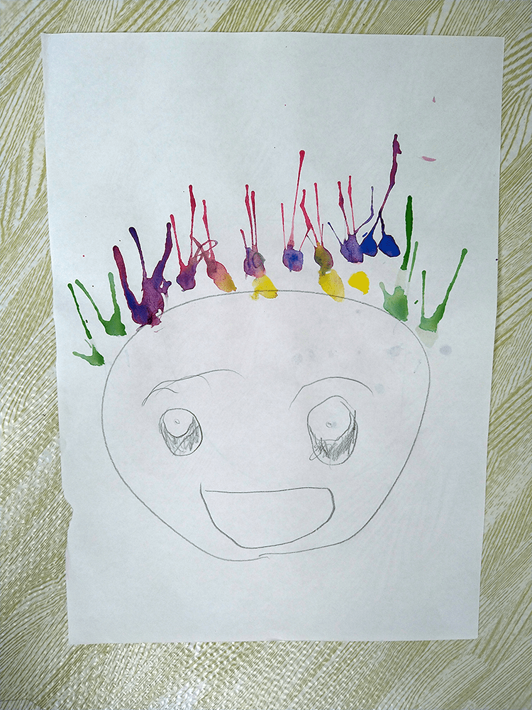 やってみるとコントロールは難しくて、思いもよらない絵が描けたりします。それがまた、創作意欲をくすぐってくれるのです。 「これ、はっぱにみえる!」とか、子どもはそこから無限のストーリーを考えていくのですよね〜。