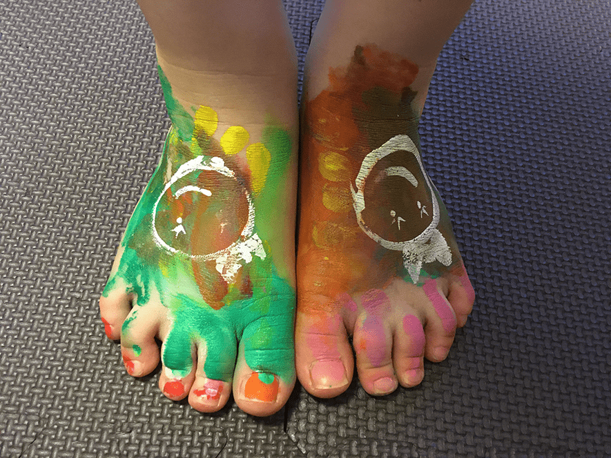 おうち時間が沢山あった時期に、広くないベランダに絵の具を出しました。父子で手に足に目一杯、絵の具を塗りたくりました。