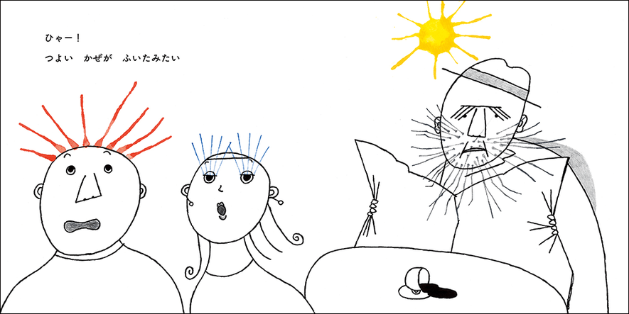 “触らなくても絵が描けるんだ”という、楽しい提案。息で絵を描く絵本なのです。頭のかたくなった僕らは、意外と思いつかないですよね(笑)!