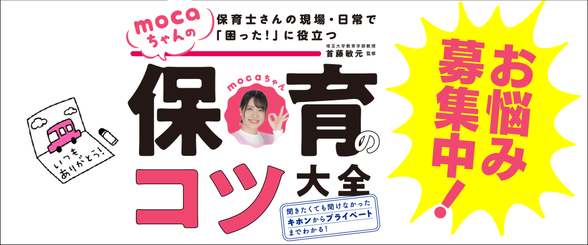 YouTubeチャンネルで保育士さんたちに役立つ情報の発信が大人気のmocaちゃん! 保育士さんたちに役立つ子どもとの関わりTipsは、実は家庭でも役立つものがたくさんあります。mocaちゃんに相談したいお悩みも募集中!