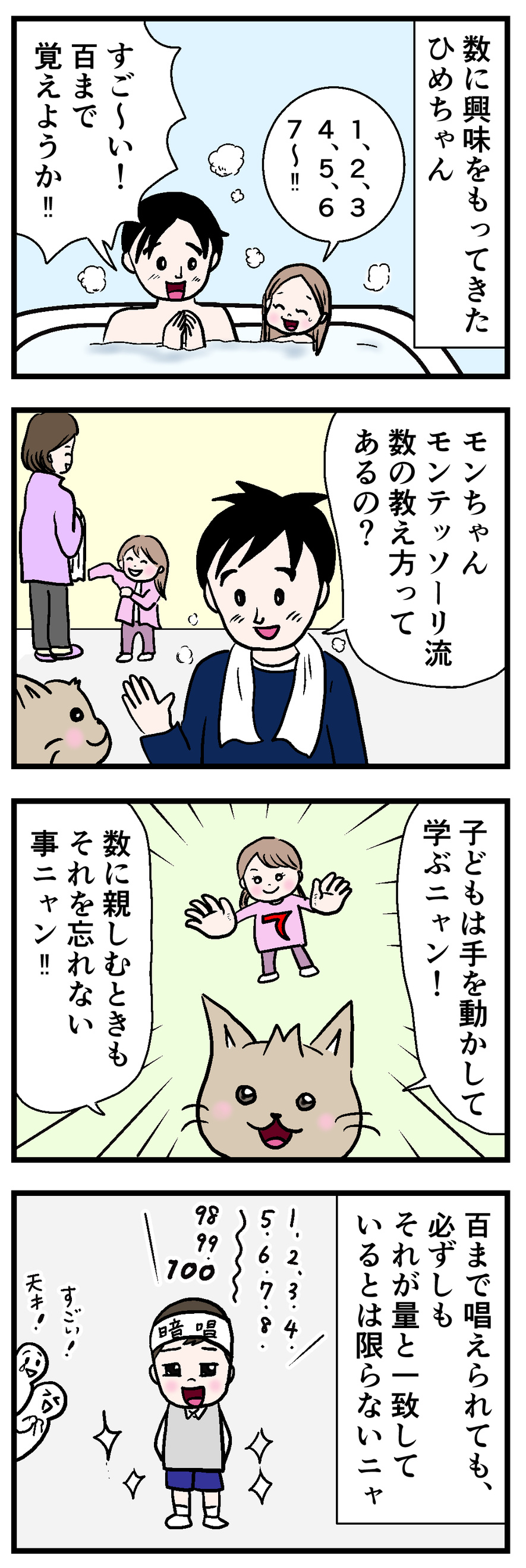 子どもに、いつ頃から、どうやって「数」を教えていったらいいのか、悩みますよね。特に、数を言ったり、数字を書いたりなど、スキルがはっきり分かるために、他の子と比べて焦ってしまいがちです。モンテッソーリ教育では、はじめに運動・感覚器官を充分に使うことが大切だと考えています。それは、幼児期にこれらの器官を洗練させることが、数の学びの基礎をつくると考えているからです。そして、4歳ころから徐々に数教育を行っていきます。