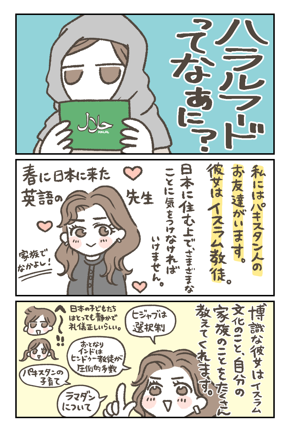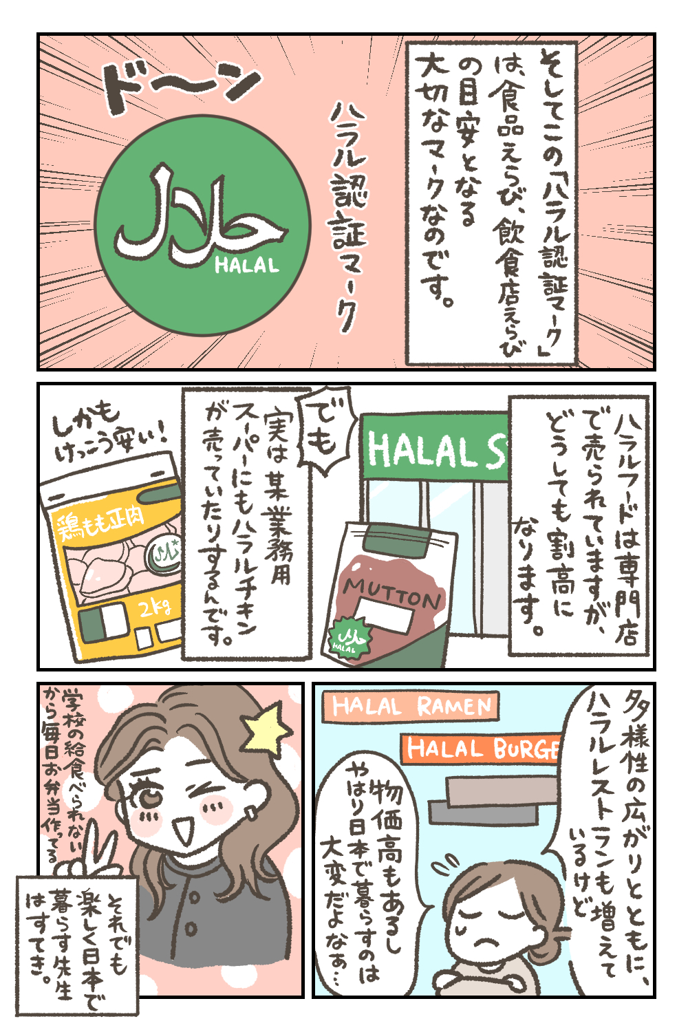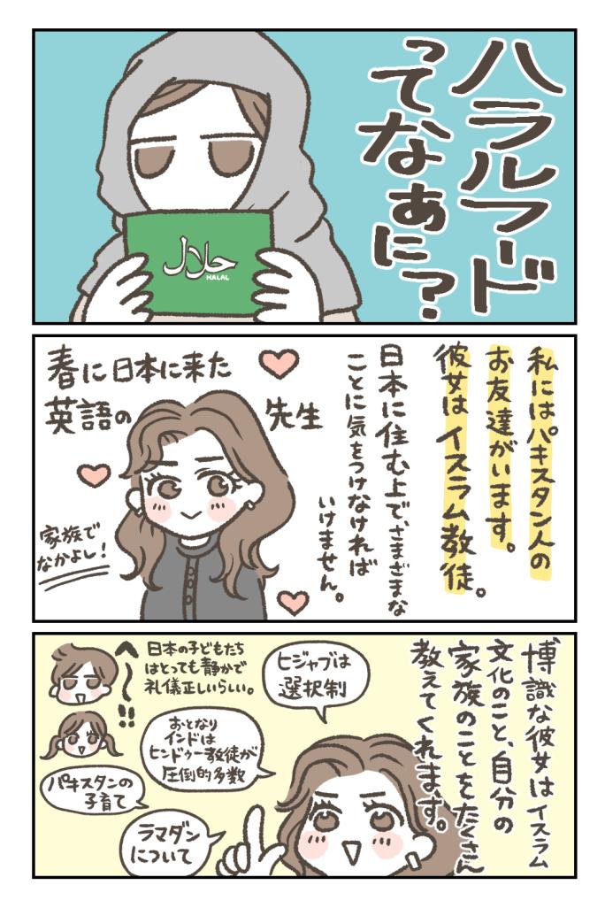 「ハラルフードって何だろう?」というテーマで、漫画にまとめてみました。