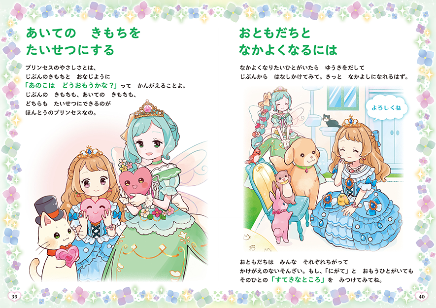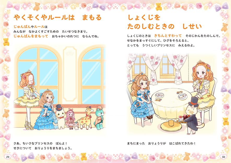 この本では、憧れのプリンセスの物語を何度も夢中で楽しむうちに、社会で生きていくために大切にしたい「おさほう」や「マナー」が自然と身につくよう、たくさんの工夫がほどこされています!