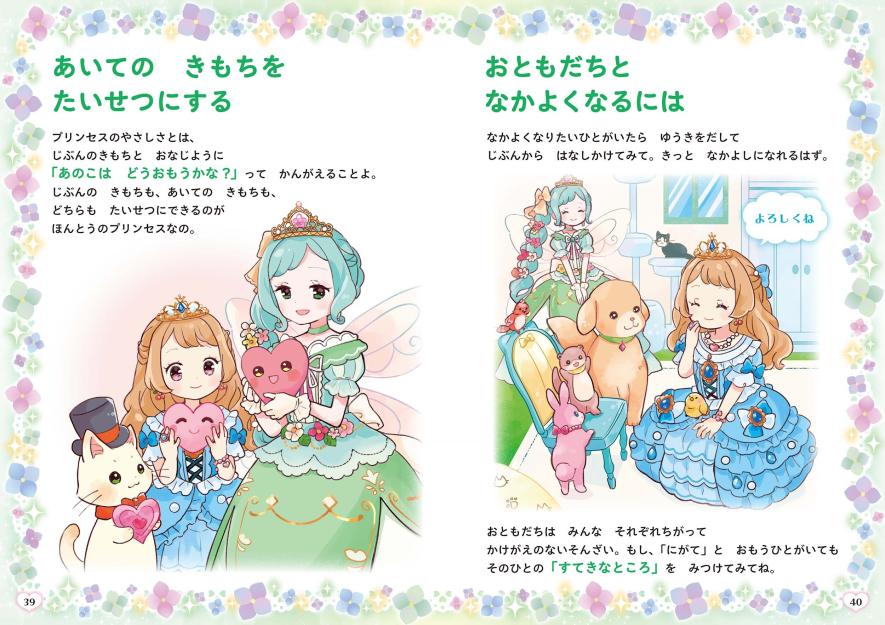 この本では、憧れのプリンセスの物語を何度も夢中で楽しむうちに、社会で生きていくために大切にしたい「おさほう」や「マナー」が自然と身につくよう、たくさんの工夫がほどこされています!