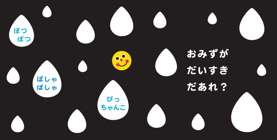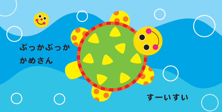 絵本では赤ちゃんが大好きな、音が楽しい“くりかえし言葉”をつかっています。