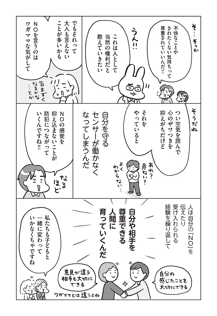 「うちにも赤ちゃんはくる?」といった突然やってくる素朴な質問への答え方から、性犯罪の被害者・加害者にならないための日々の言葉かけ、思春期に訪れる男女の心と体の変化まで、親子で一緒に学ぶことができます。