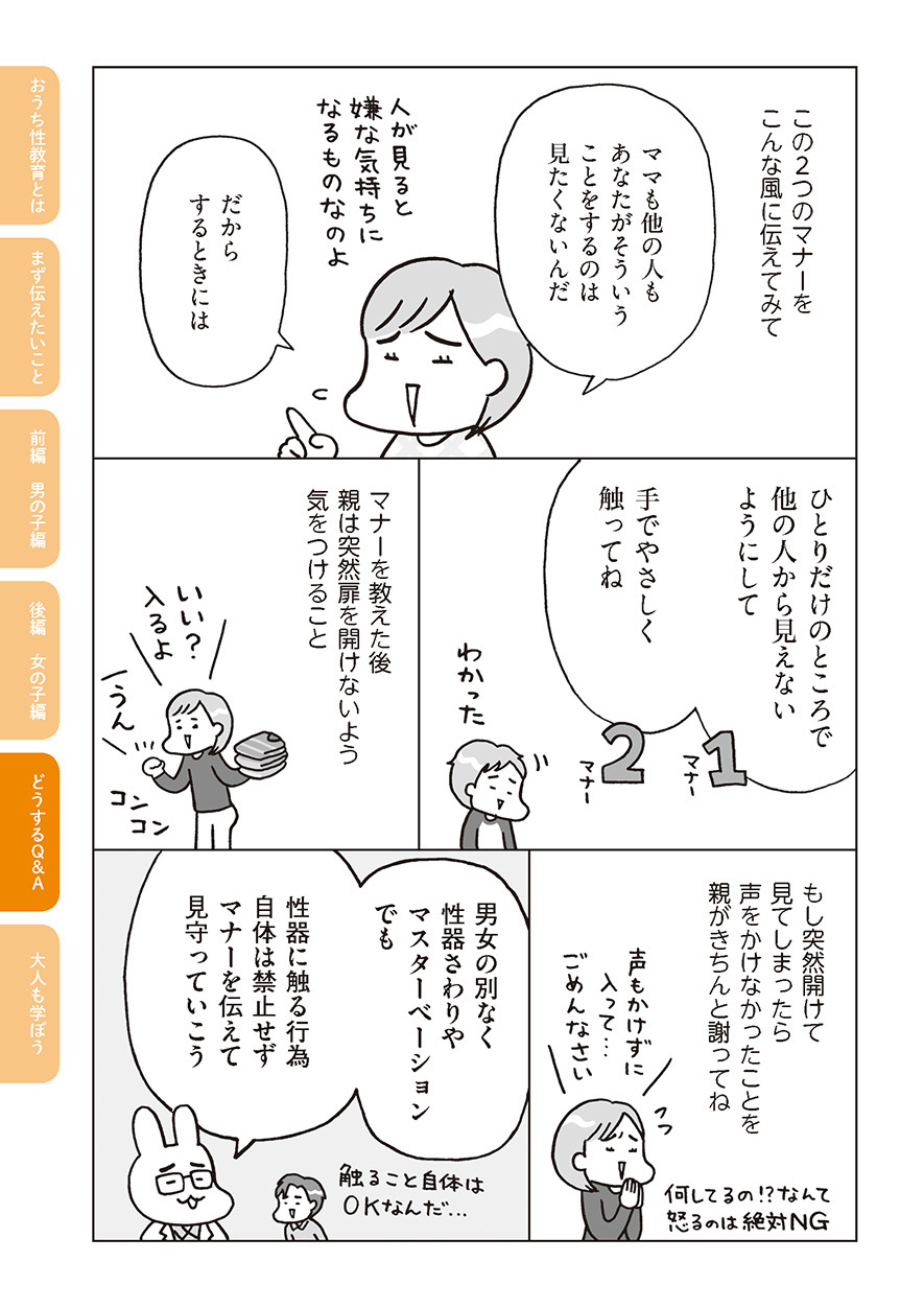 「うちにも赤ちゃんはくる?」といった突然やってくる素朴な質問への答え方から、性犯罪の被害者・加害者にならないための日々の言葉かけ、思春期に訪れる男女の心と体の変化まで、親子で一緒に学ぶことができます。