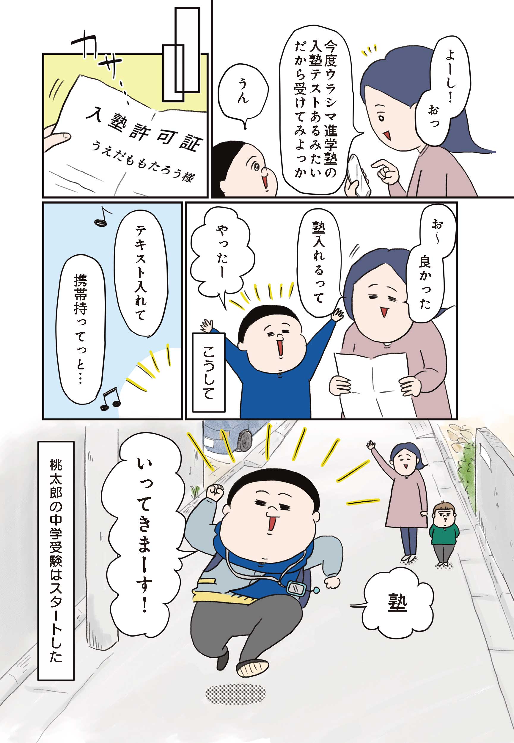 中学受験を考えていなかったごく一般的な家庭、うえだ家。が、しかし、長男が入学した公立小学校はまさかの中学受験率8割だった...! 情報を制するものが受験を制すると言われるほどの過熱ぶりのなか始まった受験への挑戦。上がらぬ成績や親子関係の変化への悩みと葛藤、気になるお金事情などはじめ、受験準備から壮絶な本番までを赤裸々に描いた『中学受験に挑戦したら、想像以上に壮絶でした』の一部をためし読み連載します。