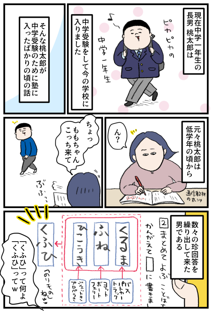 あらゆる問題で珍回答を繰り出しつづけた男児でした。