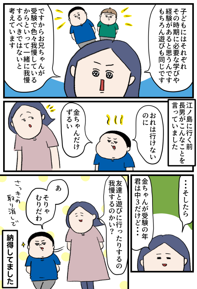 「桃ちゃんが受験をするのは桃ちゃんの事情なのだから、それに金ちゃんを付き合わせるのは違うと思う」