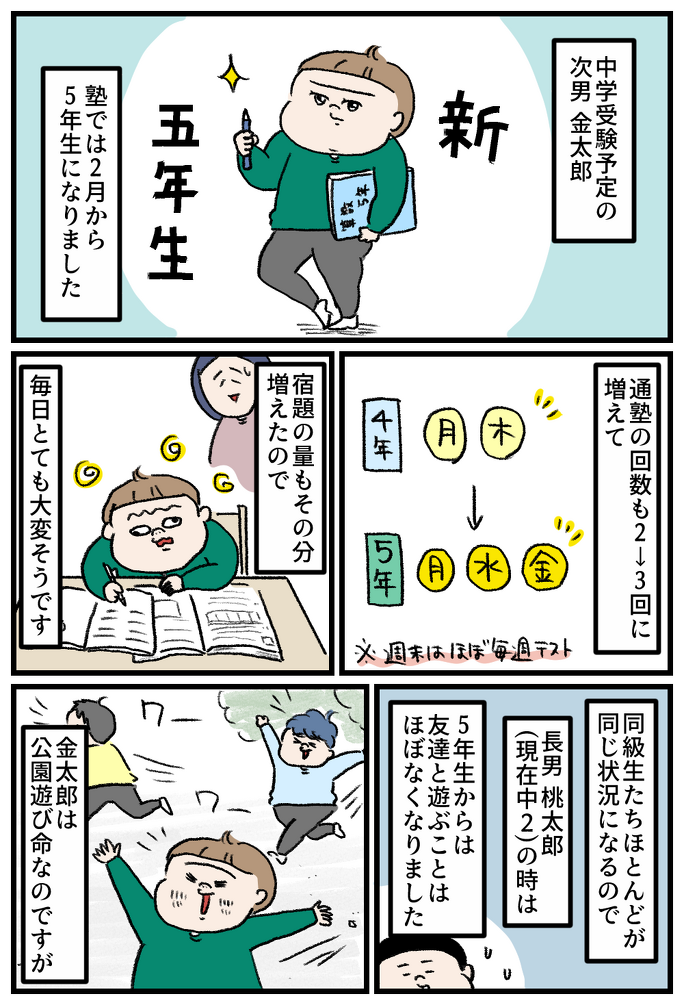 さて、長男と同様に中学受験予定の金太郎。