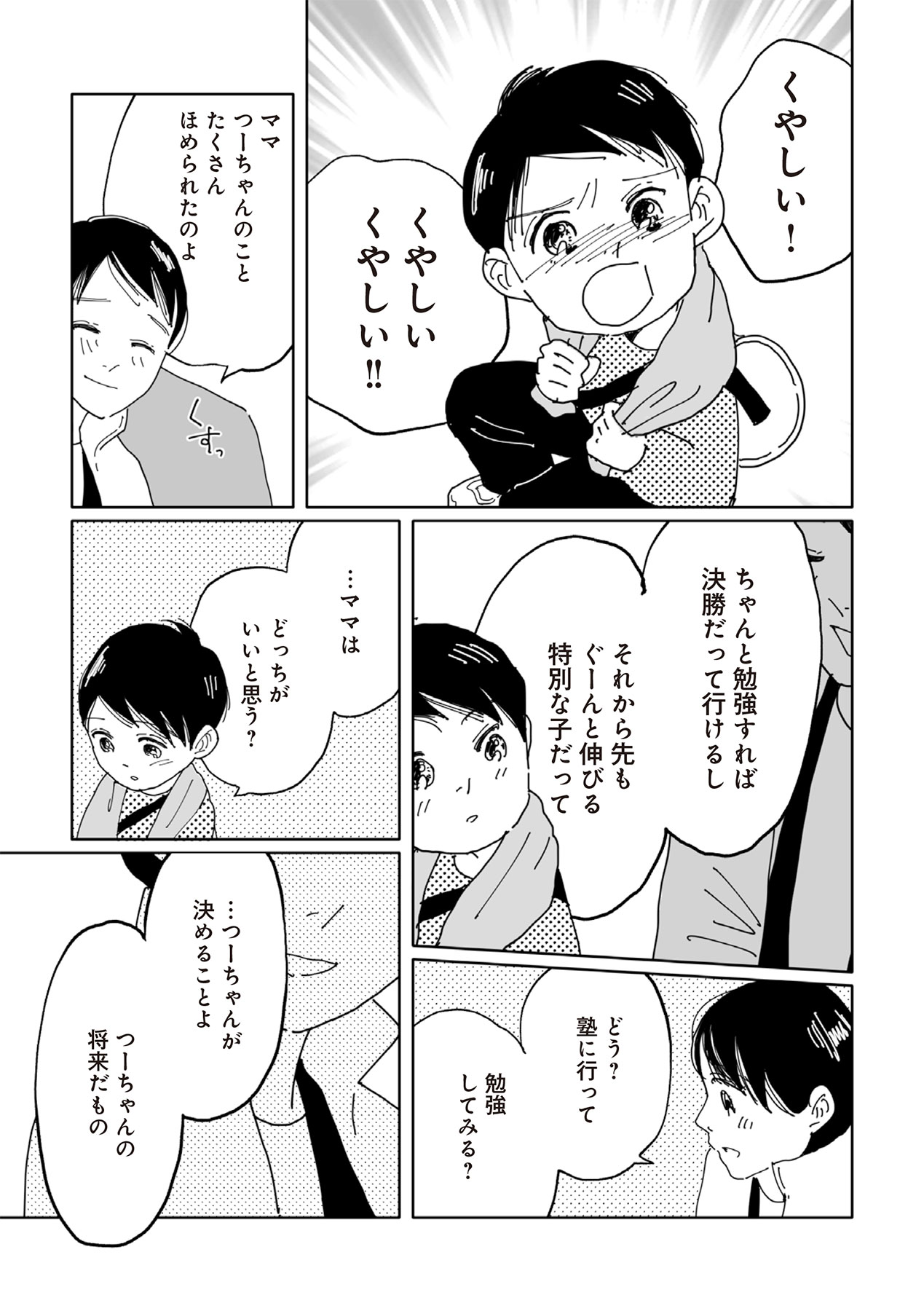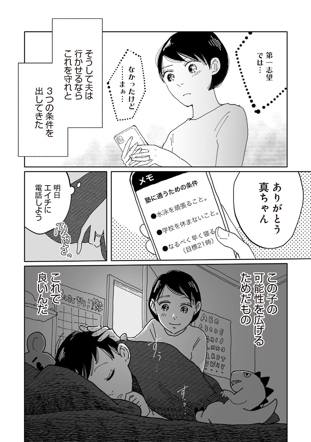 子の成績にあわせて揺れる心、家族内の不和、息が詰まる日々の中で感じる我が子への愛情――。