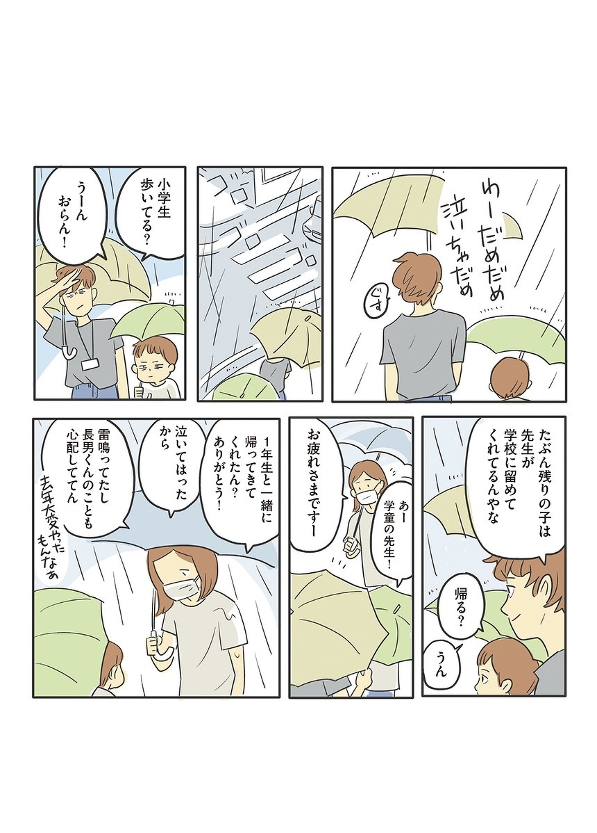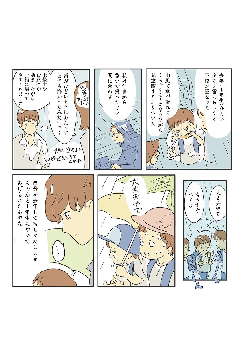 前の回 一覧へ 次の回 いってらっしゃいのその後で 第11話 雷が鳴ると私は見守りの礼を握りしめて走る 2022年04月07日 この記事をブックマークする 子どもを慌ただしく送り出した朝。 ひとりになって一番自分らしい瞬間に感じた 日々の小さな出来事を綴ります。毎週木曜日更新予定。 いってらっしゃいのその後で いってらっしゃいのその後で ツルリンゴスター 【定価】 1,210円(本体1,100円+税) 【発売日】 2021年11月26日 【サイズ】 A5判 【ISBN】 9784046808516 試し読み 紙の本を買う 電子書籍を買う おすすめコミックエッセイ この記事をブックマークする 前の回 一覧へ 次の回 この記事をシェアする